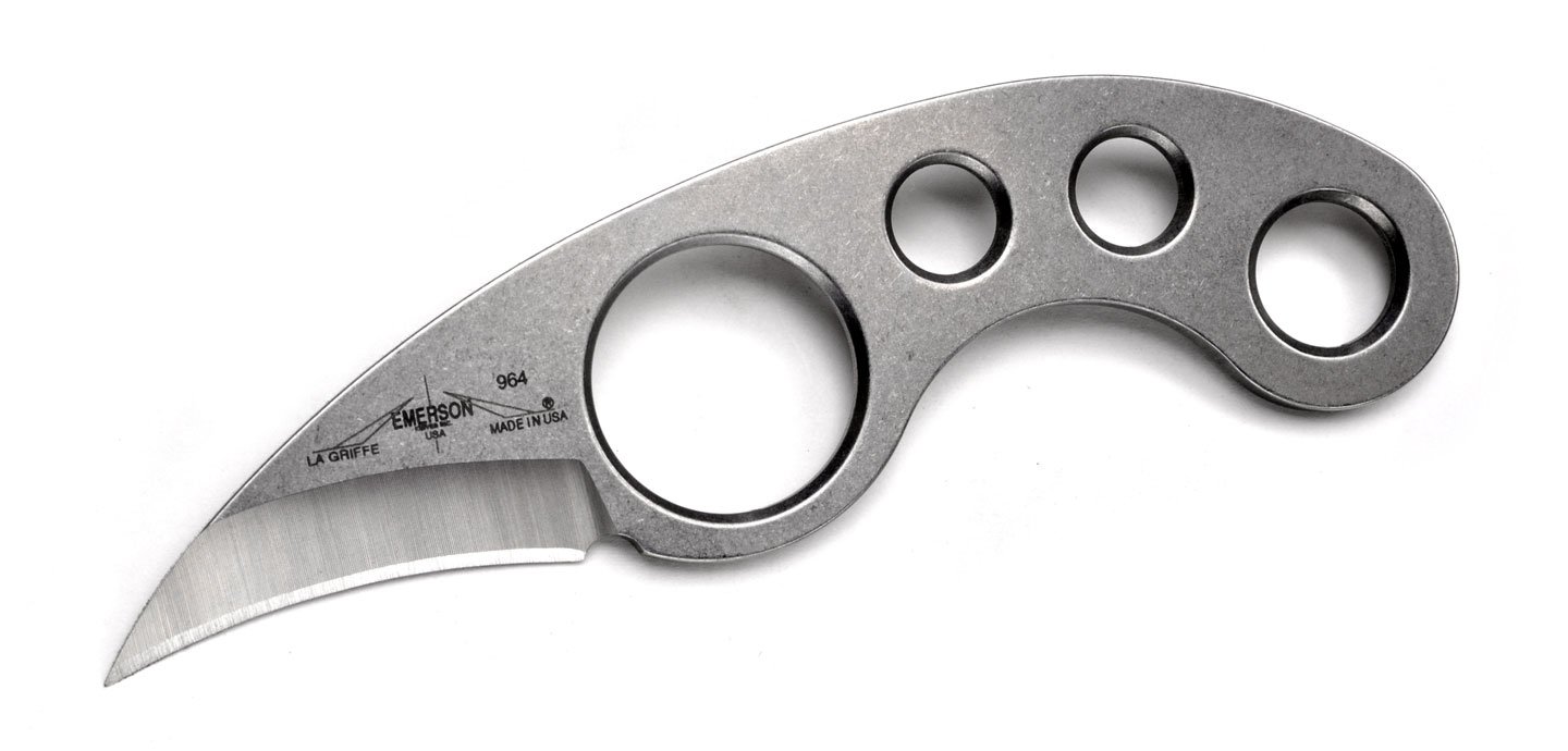 The Emerson La Griffe is as cool as it gets. It is as simple, bare and to the point as one can design a knife. It stays true to its name and serves as your very own claw in the case of an emergency. Featuring a small but sturdy blade and a finger hole perfect for holding it in a comfortable grip. Universally loved and used in both the tactical fields and the outdoor fields (figuratively and literally). Included with each La Griffe is a neck chain attached to a sheath built by Blade-Tech that can be attached with screws (not included) to a belt clip to offer more carrying methods.